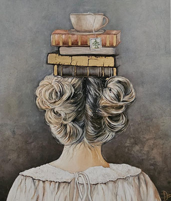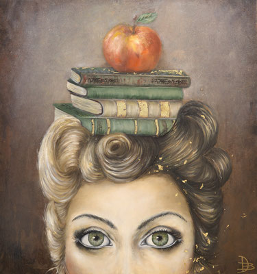 Im Spannungsfeld von Rationalität und Intuition stapelt sich das Wissen, ein stiller Dialog entsteht. Indem der Geist die Bücher, wie ein Fundament der Selbstbefragung balanciert, reift die Frucht innerer Erkenntnis.
